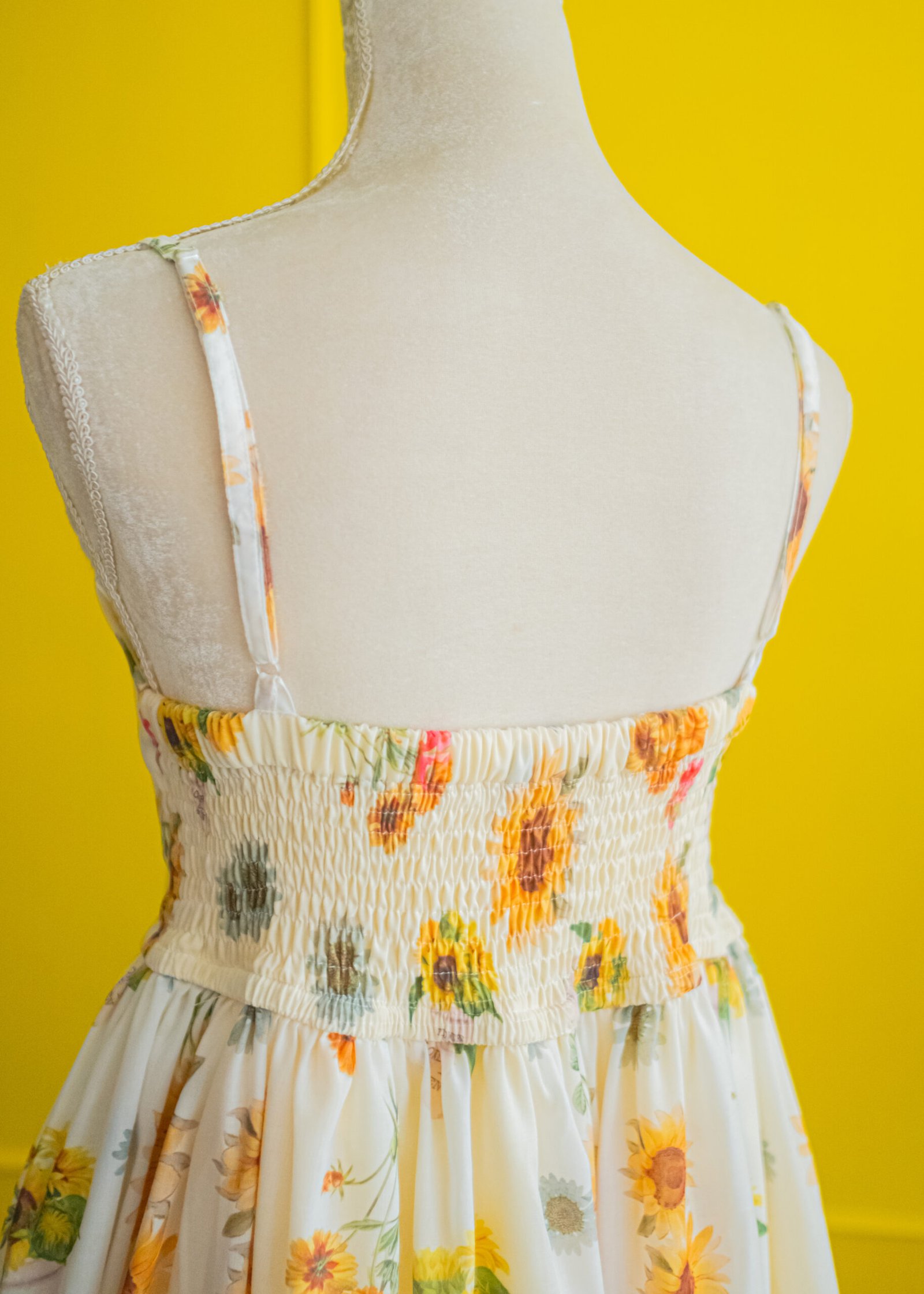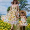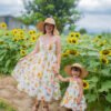 A radiant sunflower print on a soft, lightweight and breathable fabric that brings a touch of sunshine to your wardrobe. The adult dress features a smocked back and adjustable straps for a comfortable, customizable fit, along with a ruched front detail for added charm