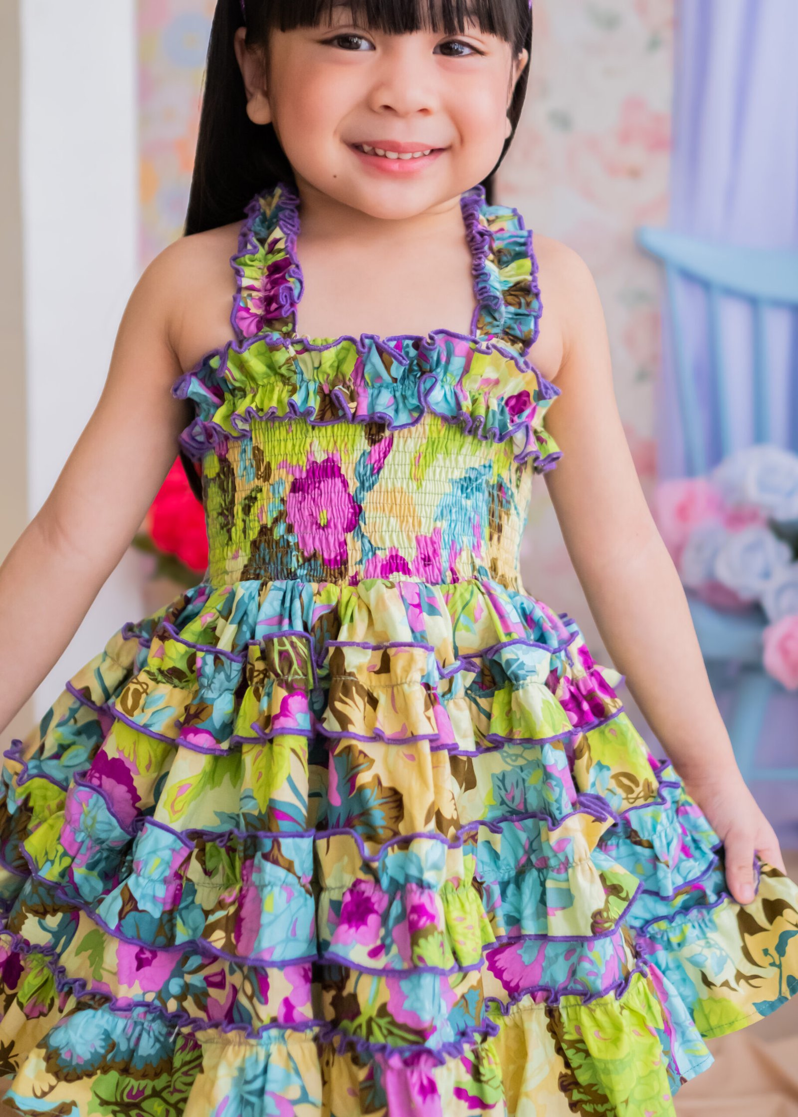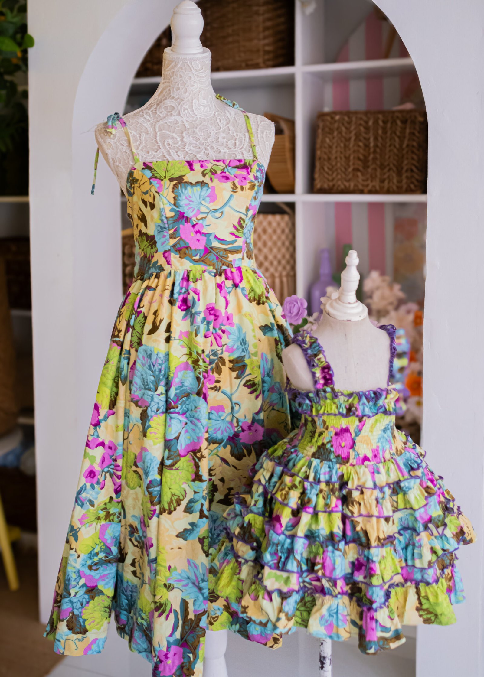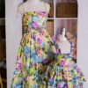 Bright, bold, and made for sunny days — our Tropical Bloom dress set features a vibrant floral print in lush tropical hues. Crafted from a soft, lightweight cotton fabric with a smocked bodice and playful ruffles for the mini version.