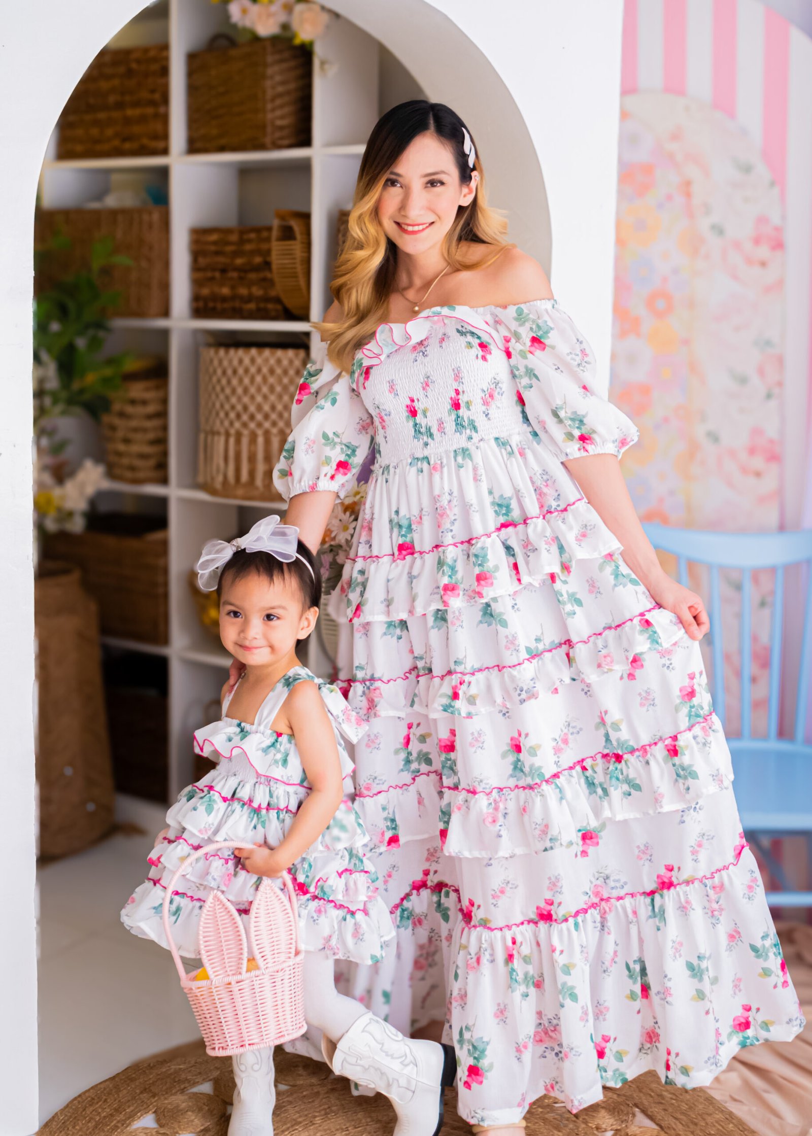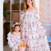 These charming matching dresses are perfect for twinning with your little one, crafted from a soft 90% polyester and 10% cotton blend that’s super lightweight and comfy. With a smocked bodice, full cotton lining, and playful ruffles in a sweet floral print, they’re made for memorable mommy-and-me moments, spring shoots, and special occasions.