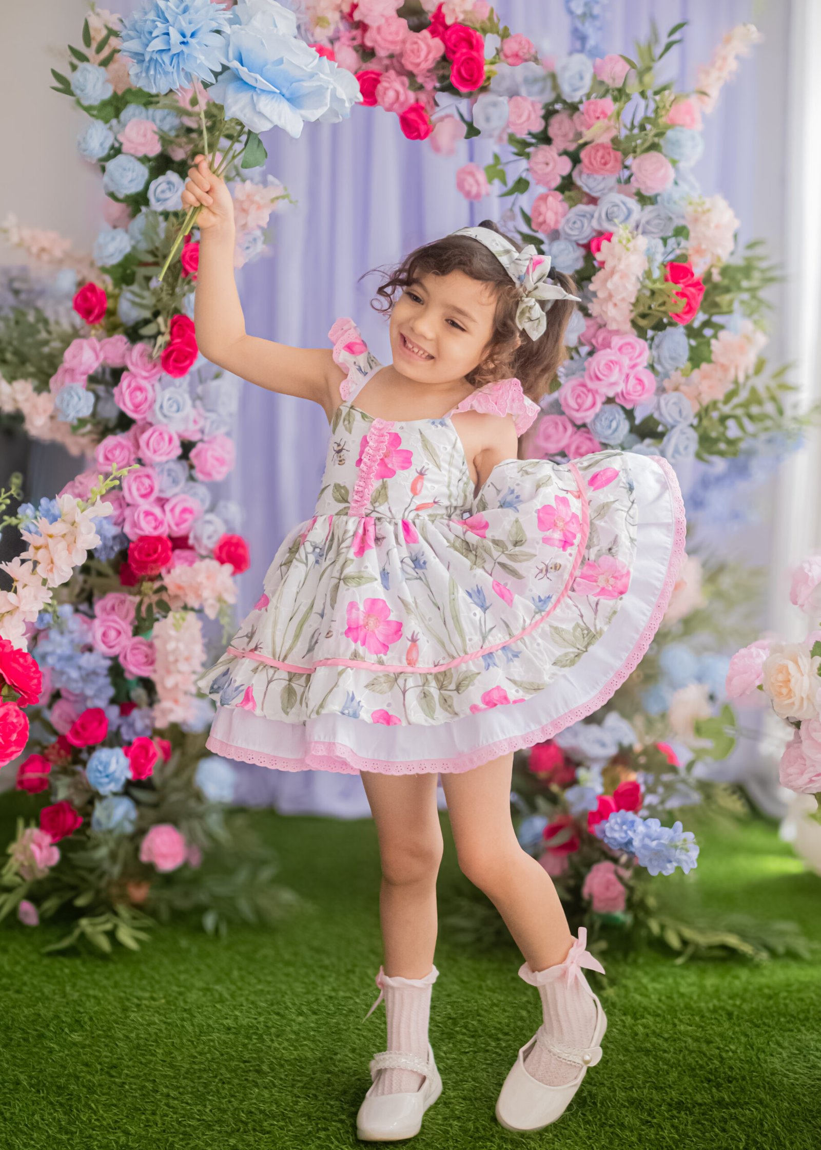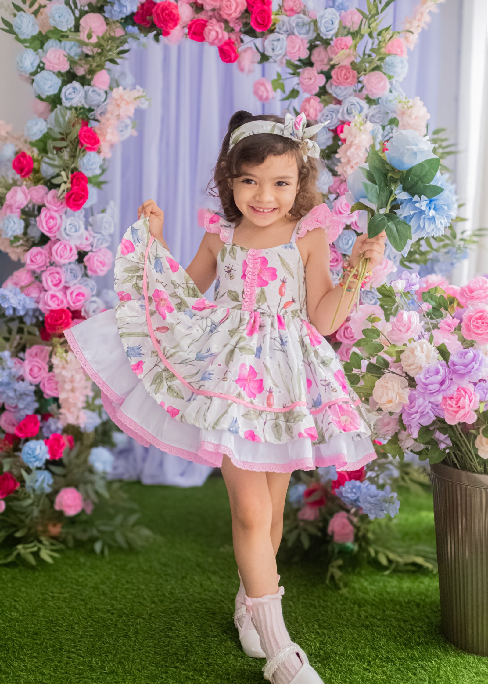 Full layered skirt with scallop edging and coordinating headband for extra dose of cuteness.