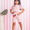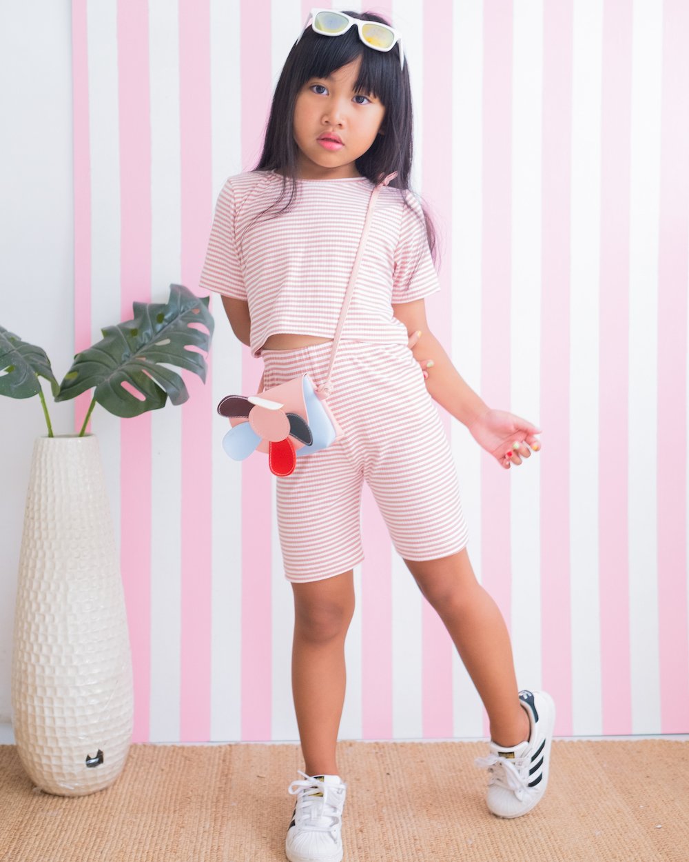 A cotton rib knit crop top and cycling shorts is incredibly comfortable to wear. Cotton is a soft and breathable fabric, which makes it perfect for activewear. Rib knit also adds a little bit of stretch to the fabric, which enhances its flexibility and ease of movement. The crop top and cycling shorts combination is also ideal for those who prefer a more form-fitting look, as they’re designed to fit snugly but comfortably. Overall, this outfit would be a great choice for the kids looking to stay comfortable and stylish while being active.